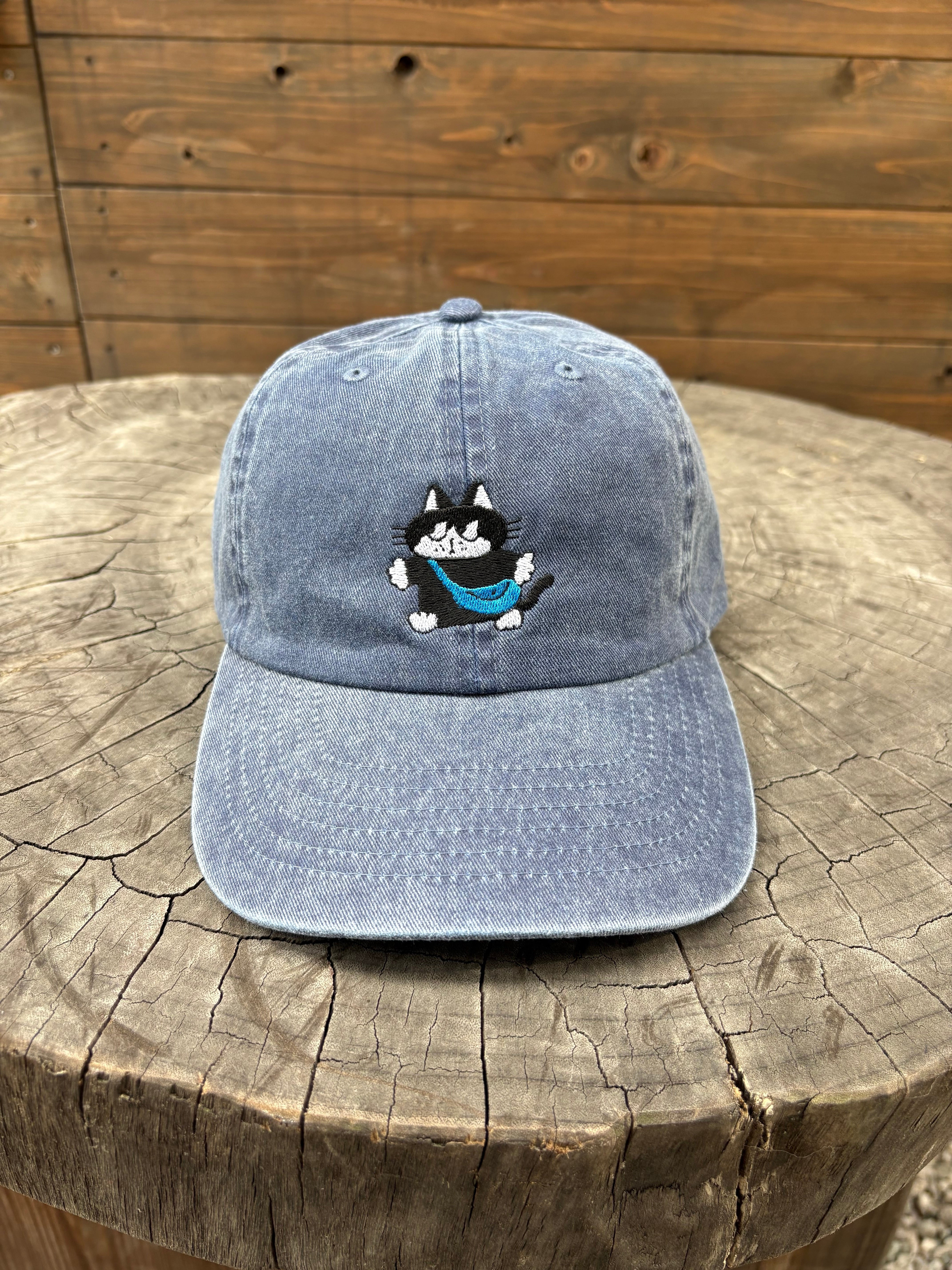 少し目付きの悪いネコ カバンを持ったネコ キャップ