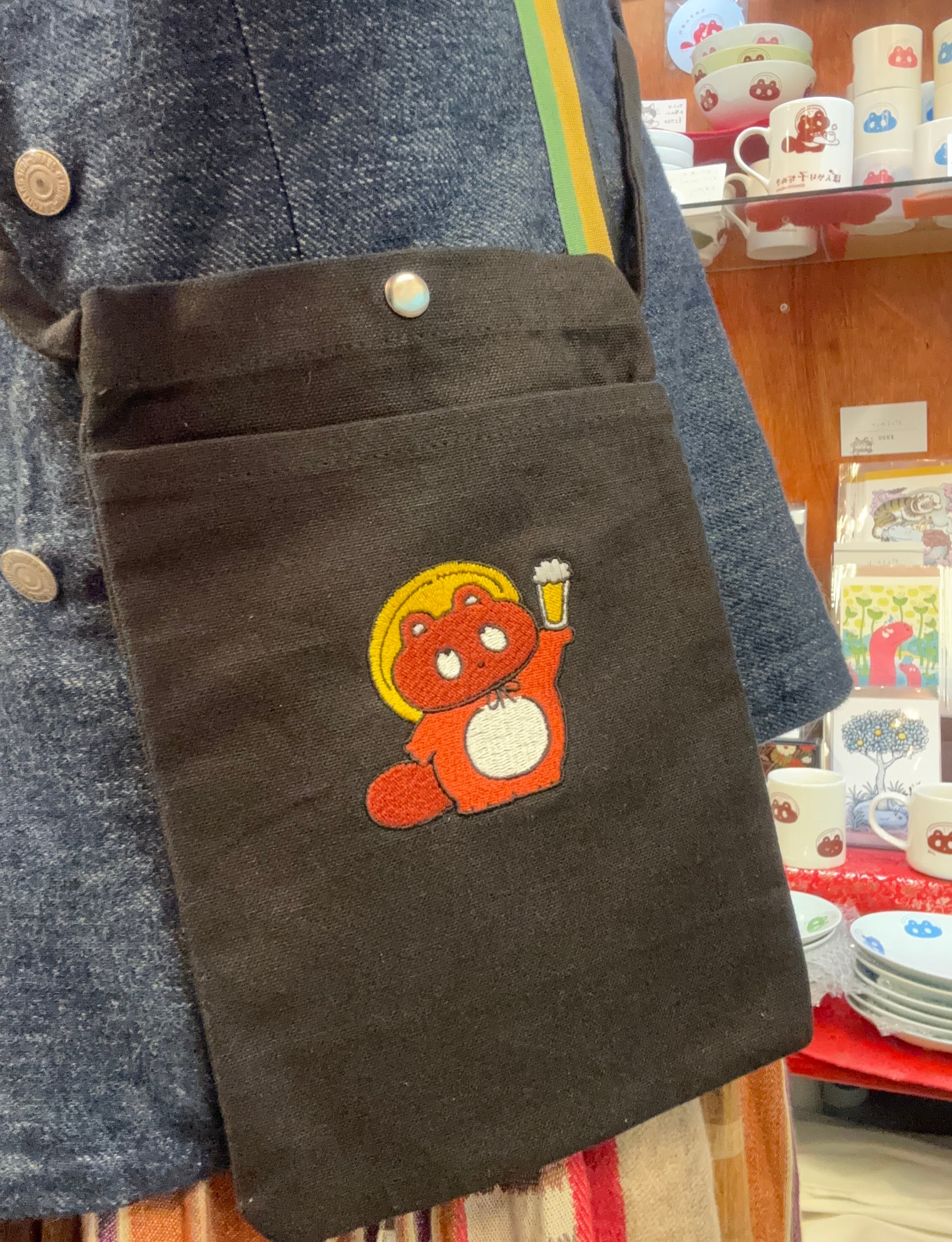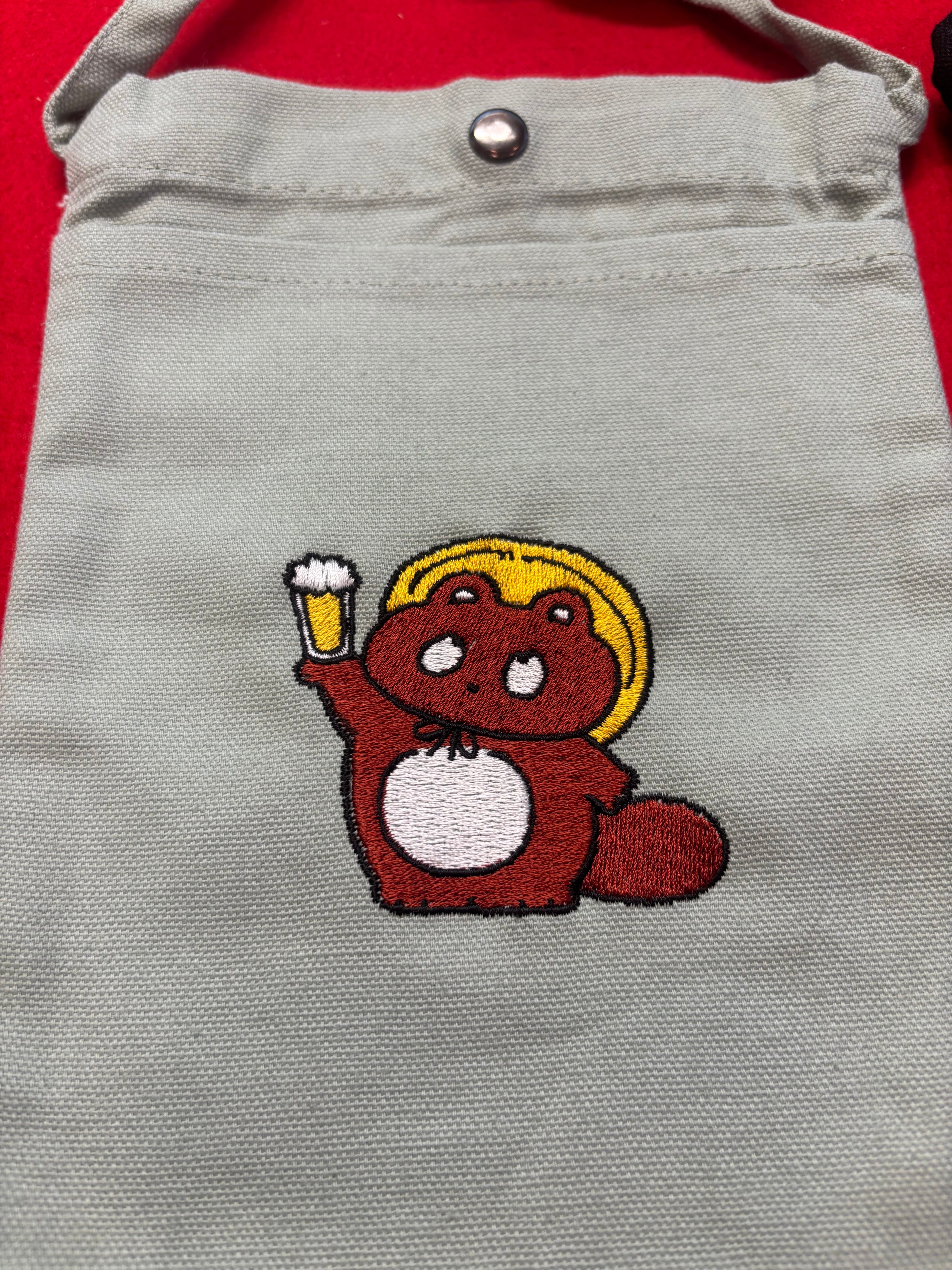 「乾杯するぼんやり子だぬき」 サコッシュ 刺繍