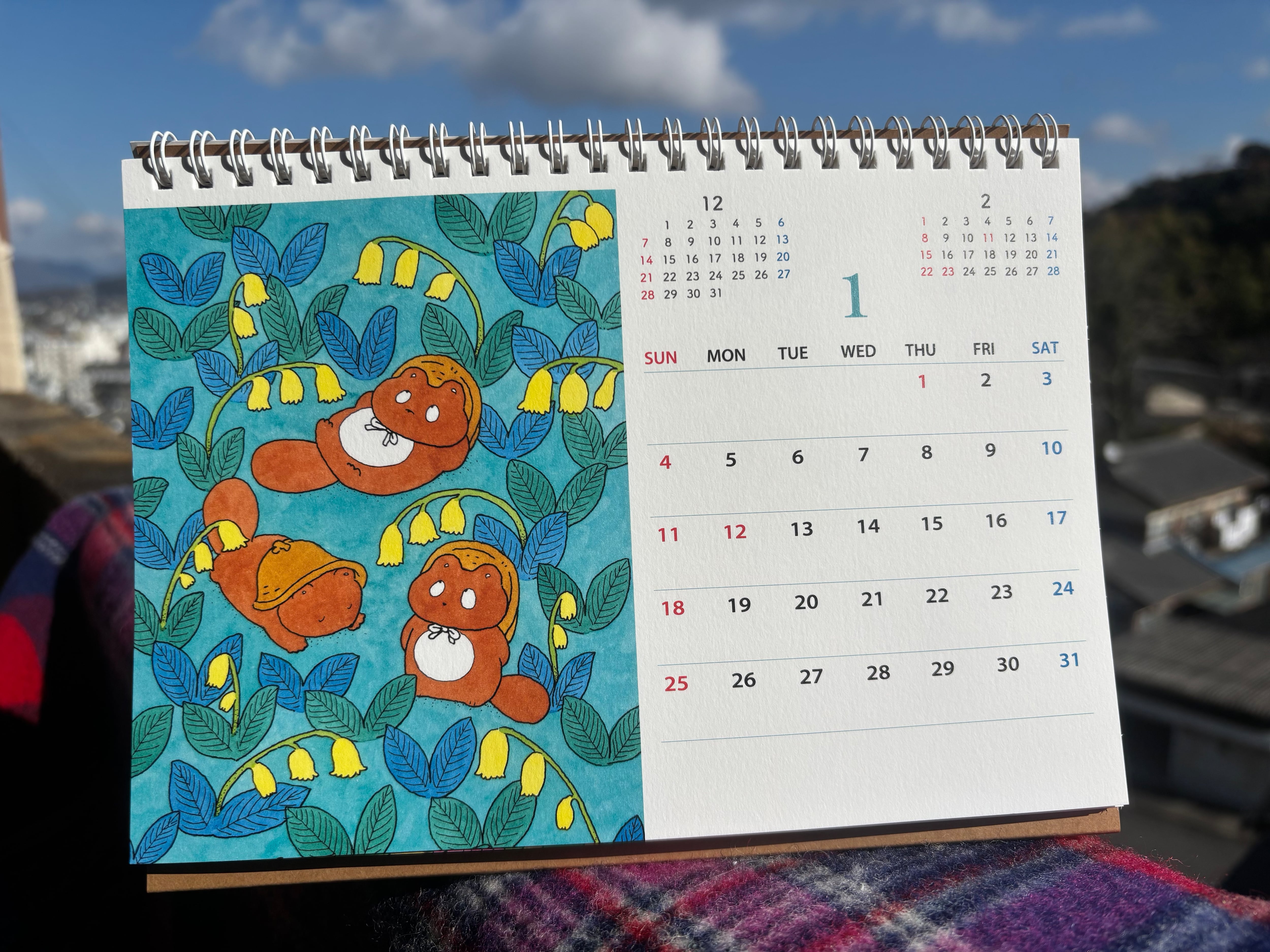 ヒダカナオトの2026年用の卓上カレンダー。 表紙+12ヶ月の計13枚綴りです。 サイズはA5横(高さ148mm×横210mm)