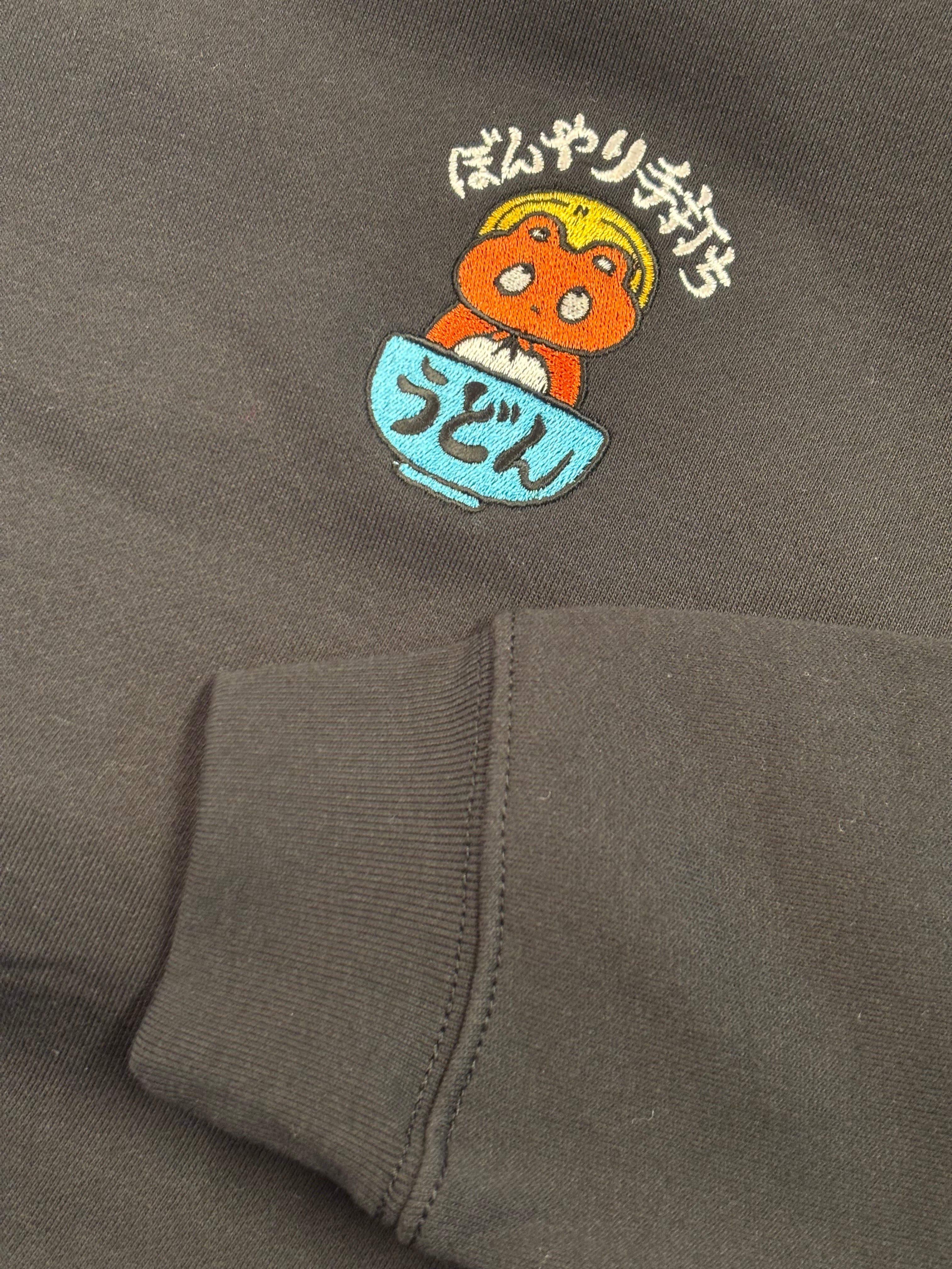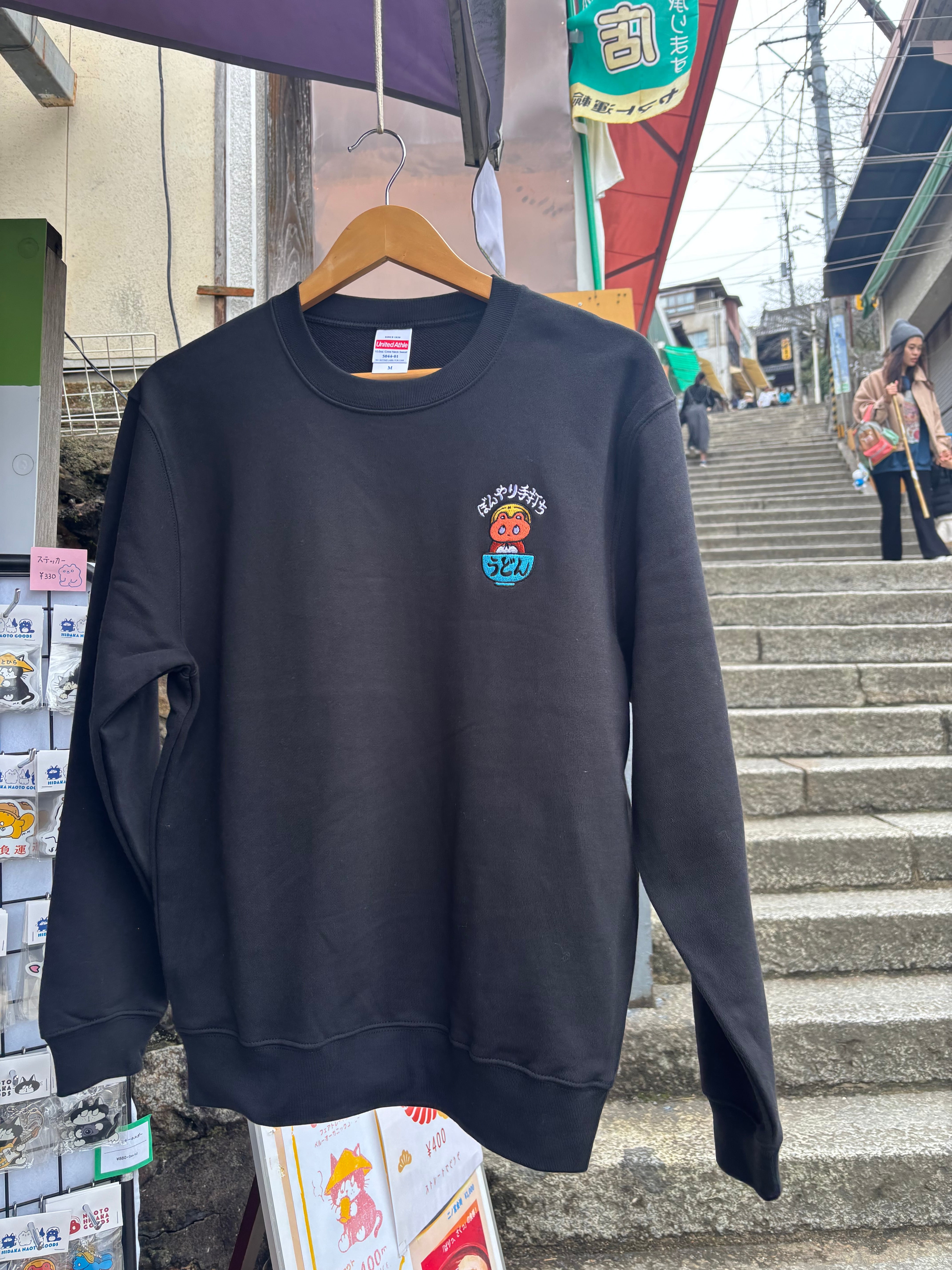 デザイン/ヒダカナオトの描く「ぼんやり子だぬき」のぼんやり手打ちうどんトレーナーです