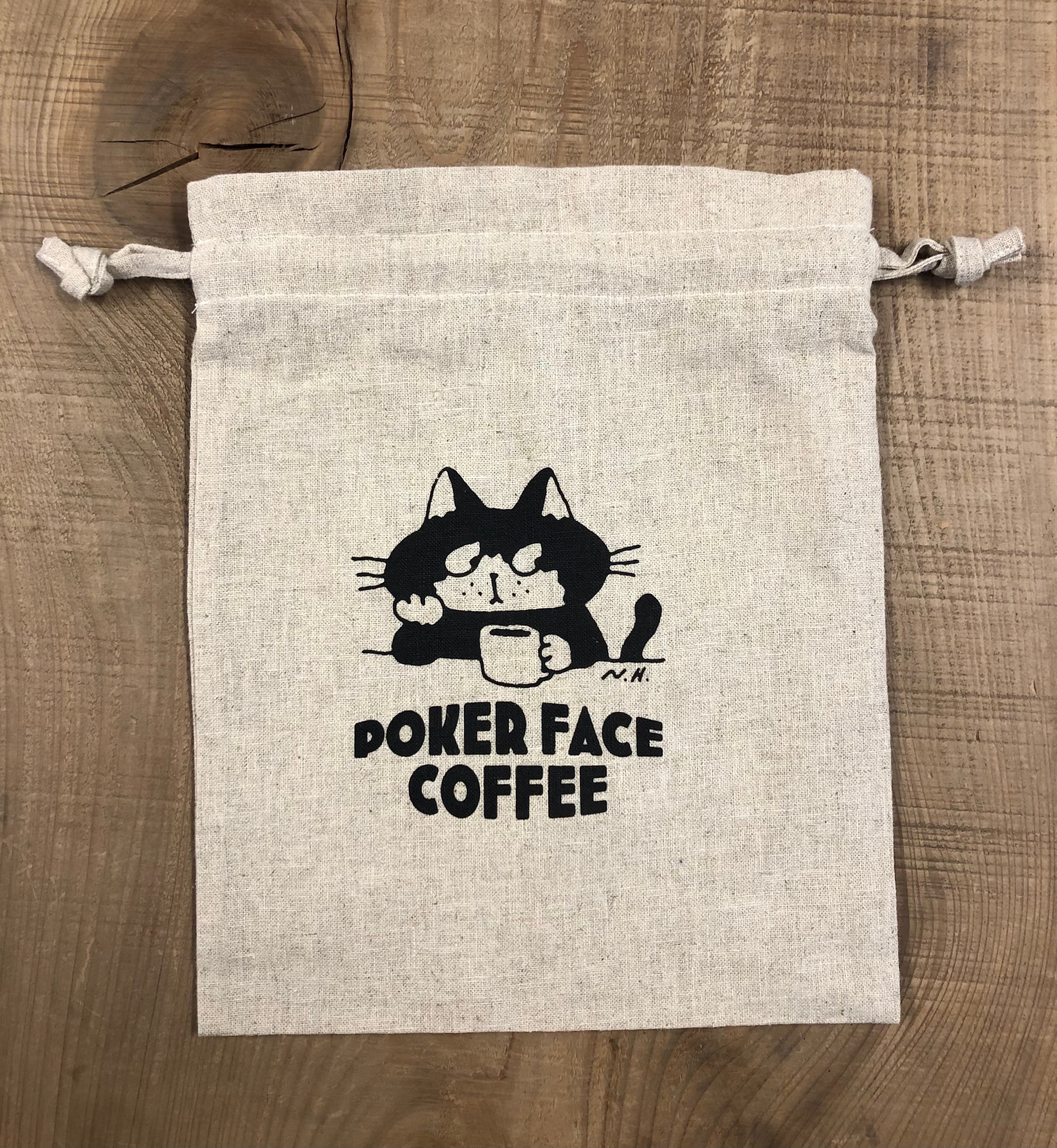 人気の少し目付きの悪いネコ POKER FACE COFFEEの巾着