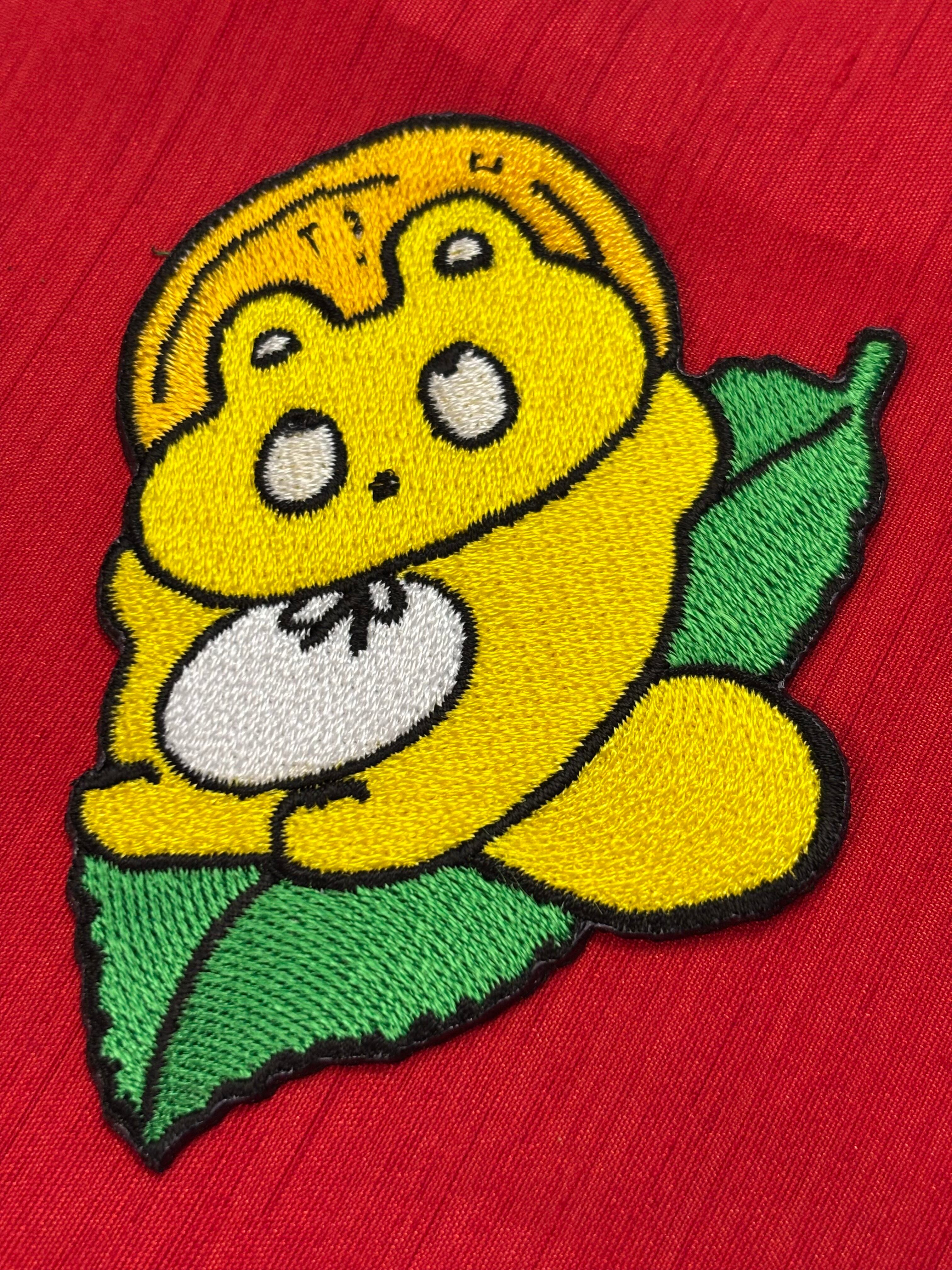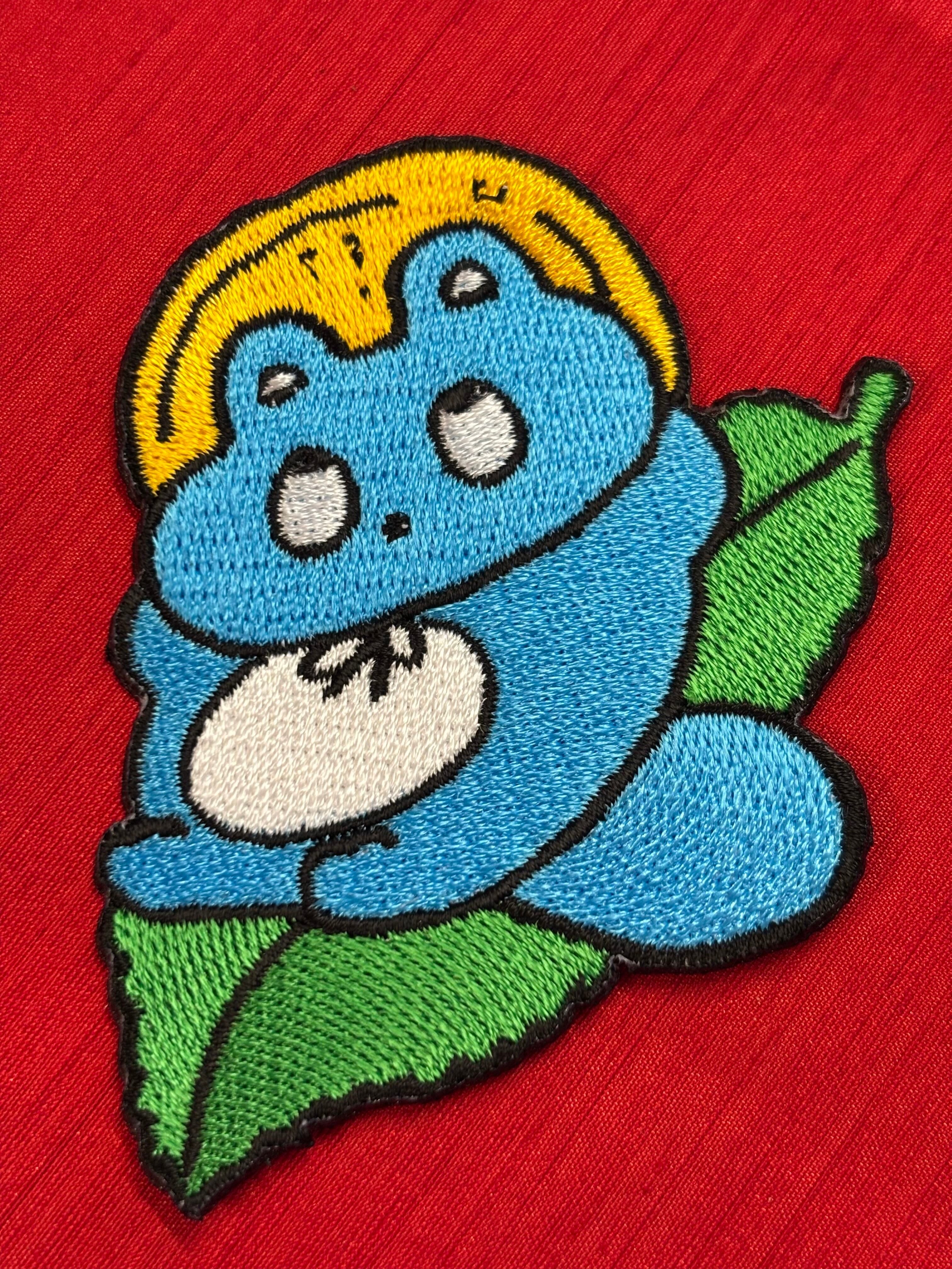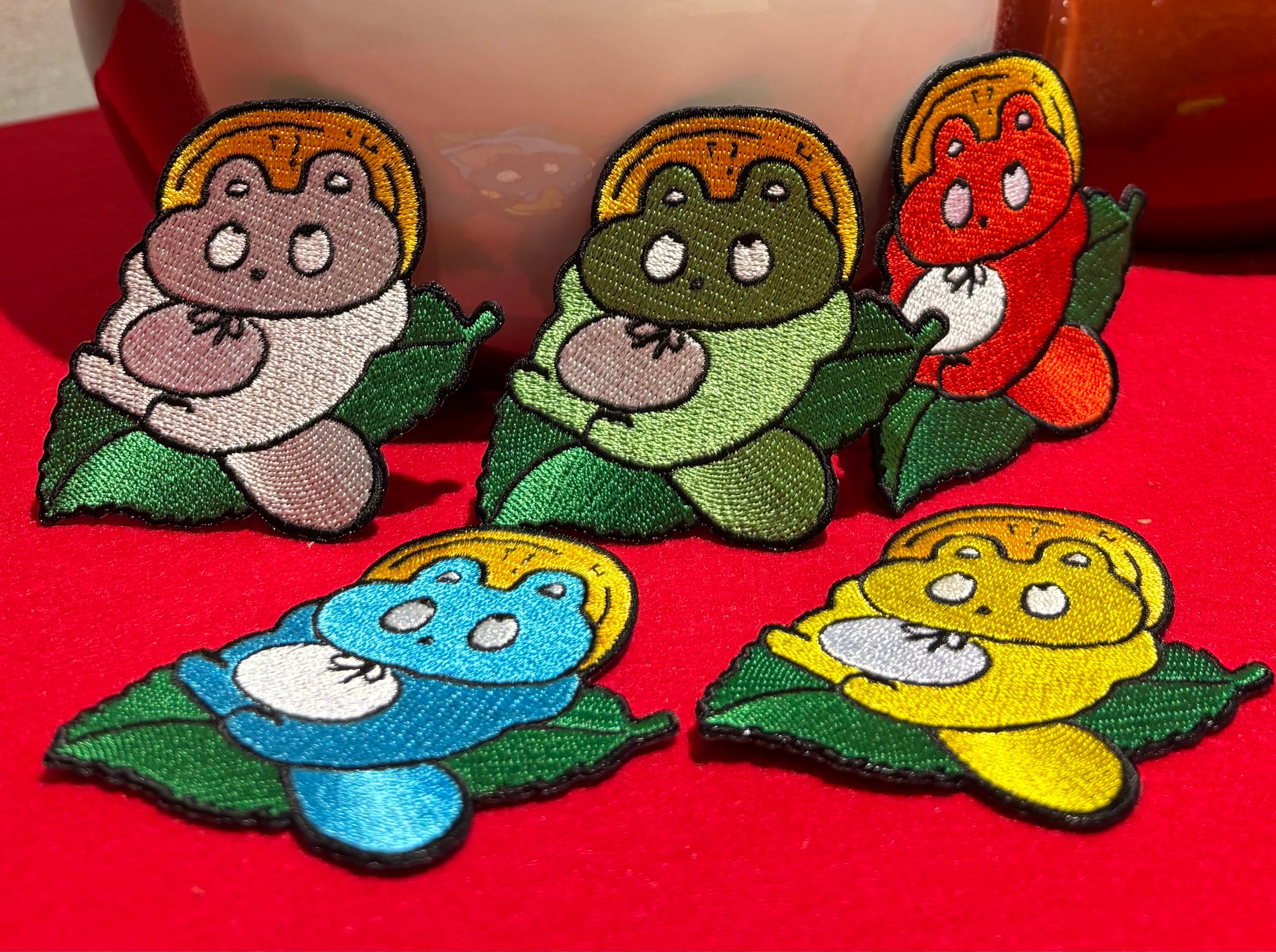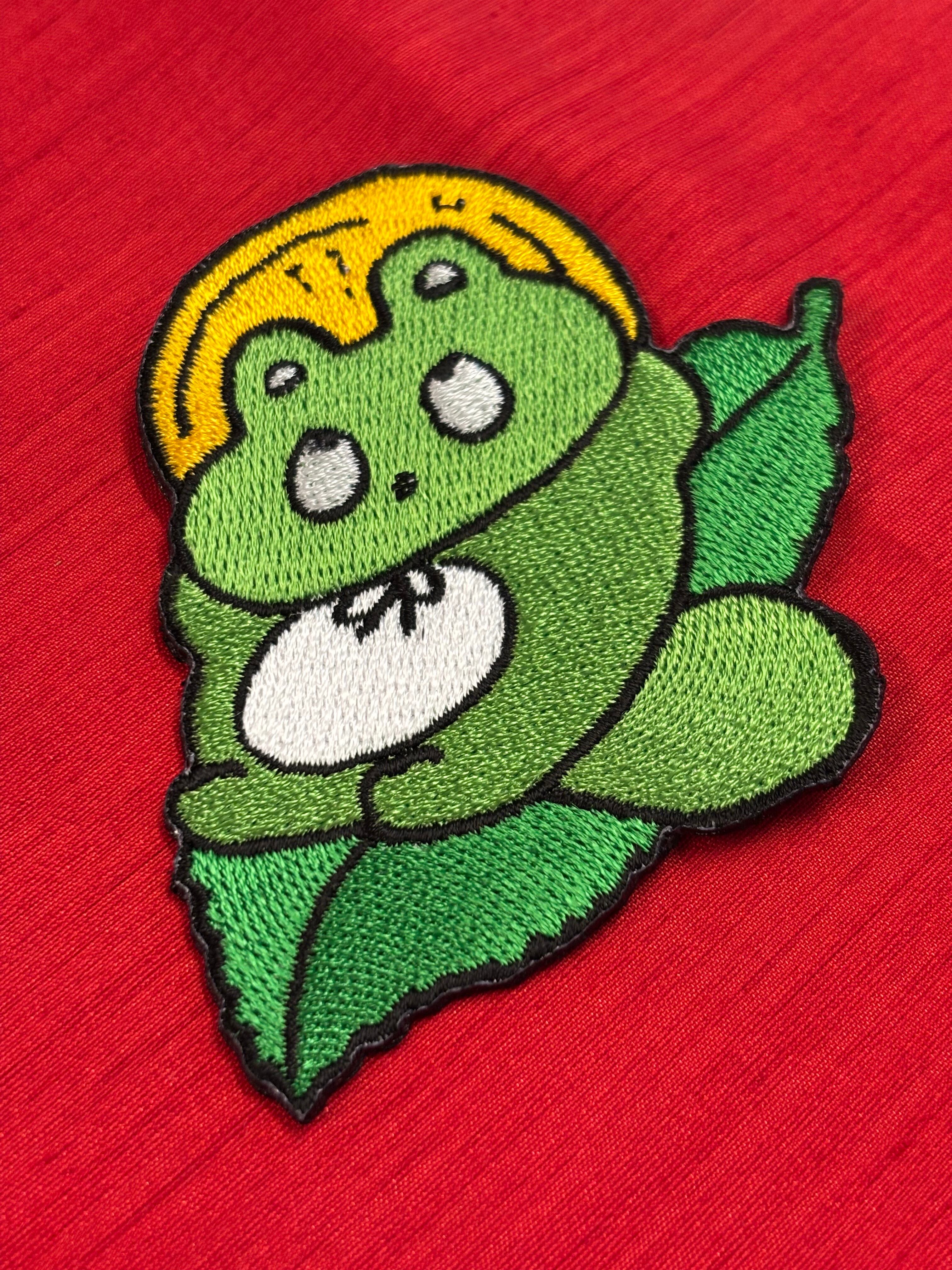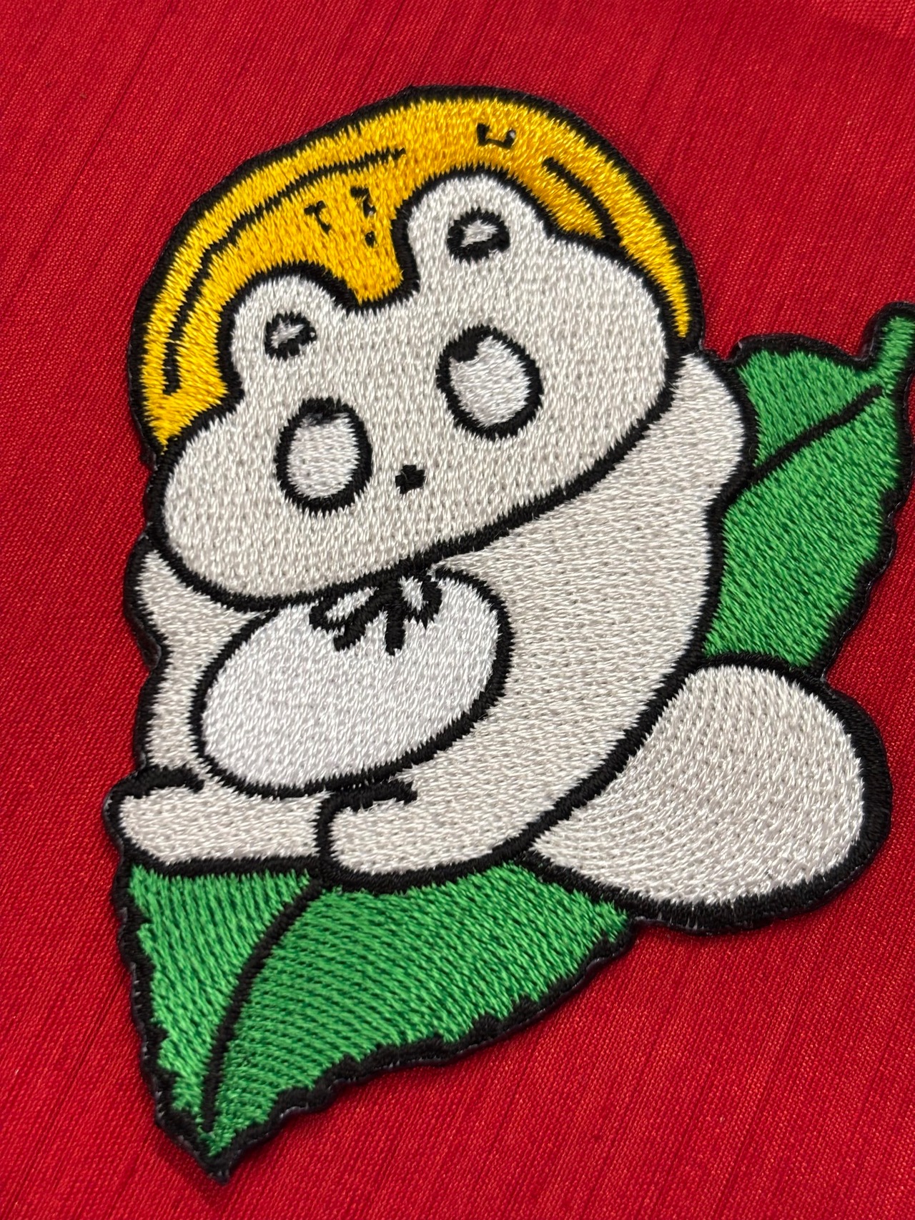 ぼんやり子だぬきが葉っぱの上で寝転んでいる姿です。お好きな場所につけて楽しんでください。