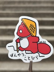 香川県琴平町にある金刀比羅宮までの785段の石段を上がっている姿の、ご当地ステッカーです。